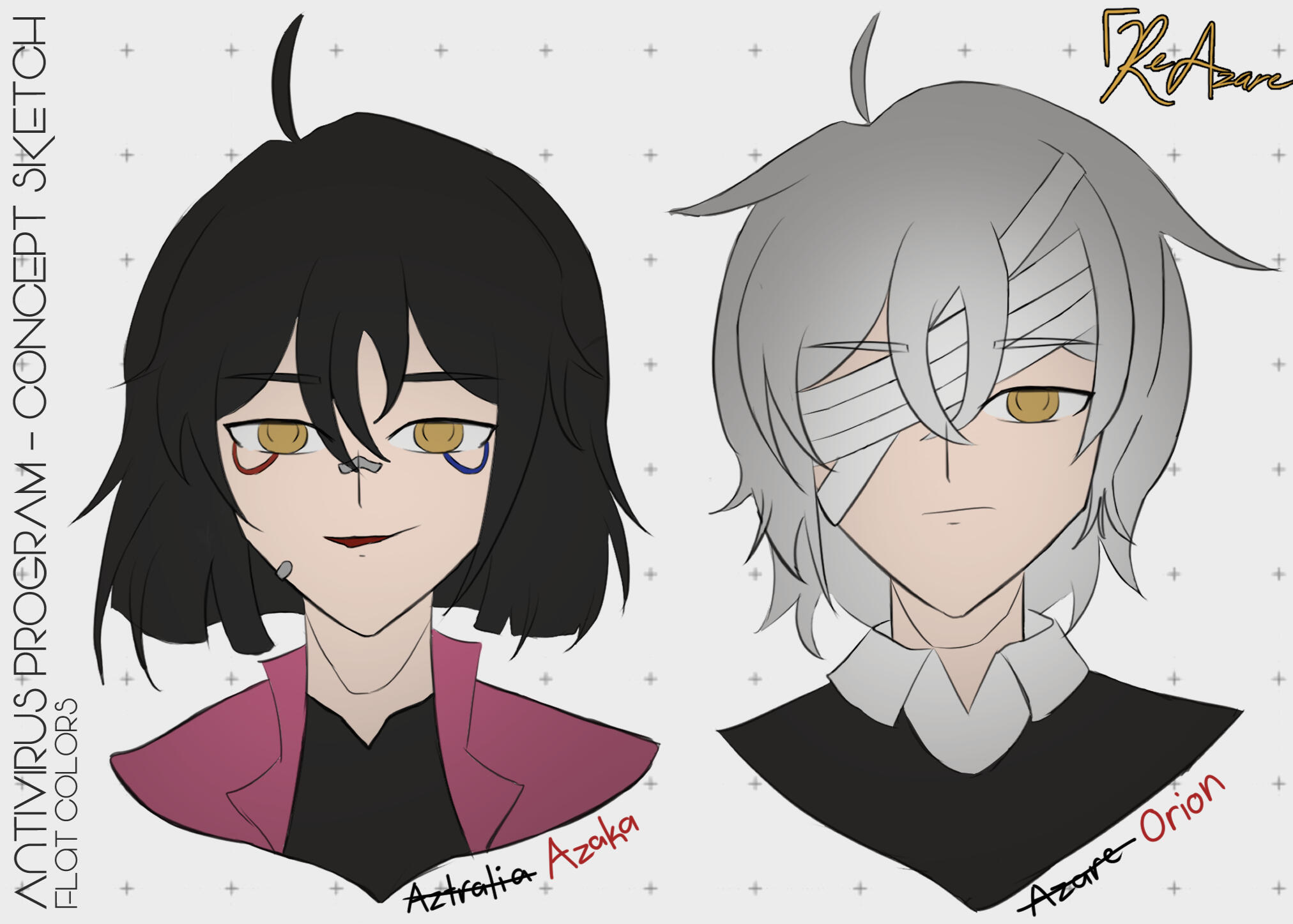 A concept sketch on the antivirus programs of Aztralia and Azare. They are new enntities of The Aphelion Project that aims to explain Aztralia and Azare's purity as digital personas of the RE:System.